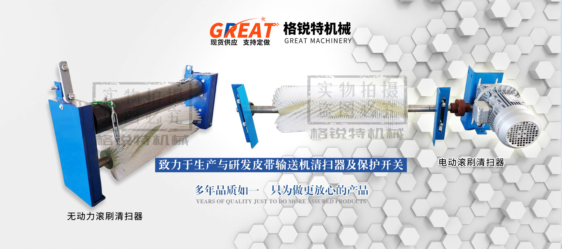 衡水格銳特機械科技有限公司常年致力于生產(chǎn)與研發(fā)皮帶輸送機清掃器及保護開關(guān),其中主營聚氨酯清掃器,合金清掃器,電動滾刷清掃器,機械式滾刷清掃器,緩沖床,緩沖條,雙向拉繩開關(guān),兩級跑偏開關(guān),打滑檢測器,料流檢測器等保護開關(guān),常年銷往各大水泥廠,煤礦廠,電廠,輸送機廠家,質(zhì)量優(yōu)越,價格實惠,望各大領(lǐng)導(dǎo)及同行來廠參觀指導(dǎo),期待您的光臨!!!
